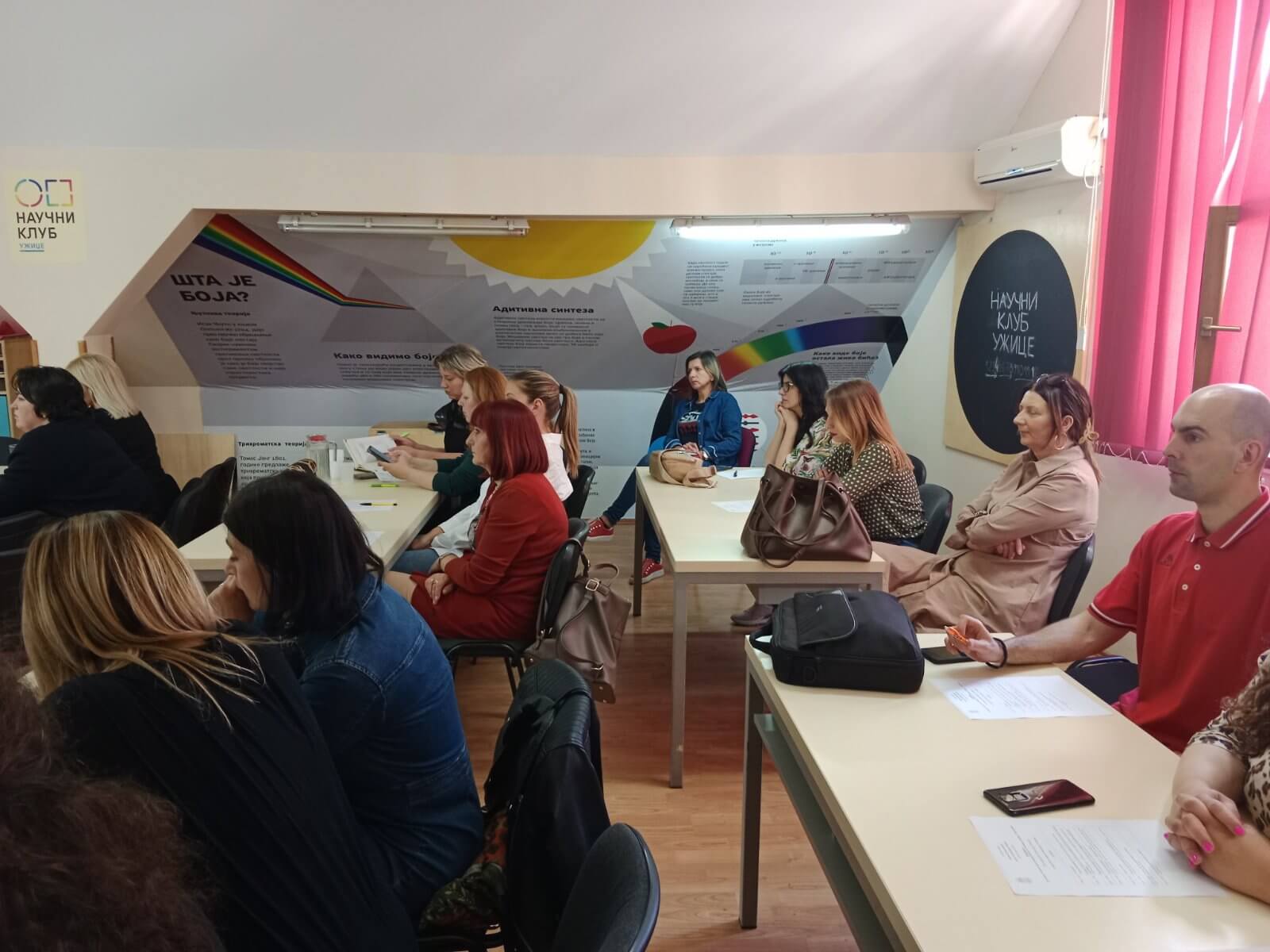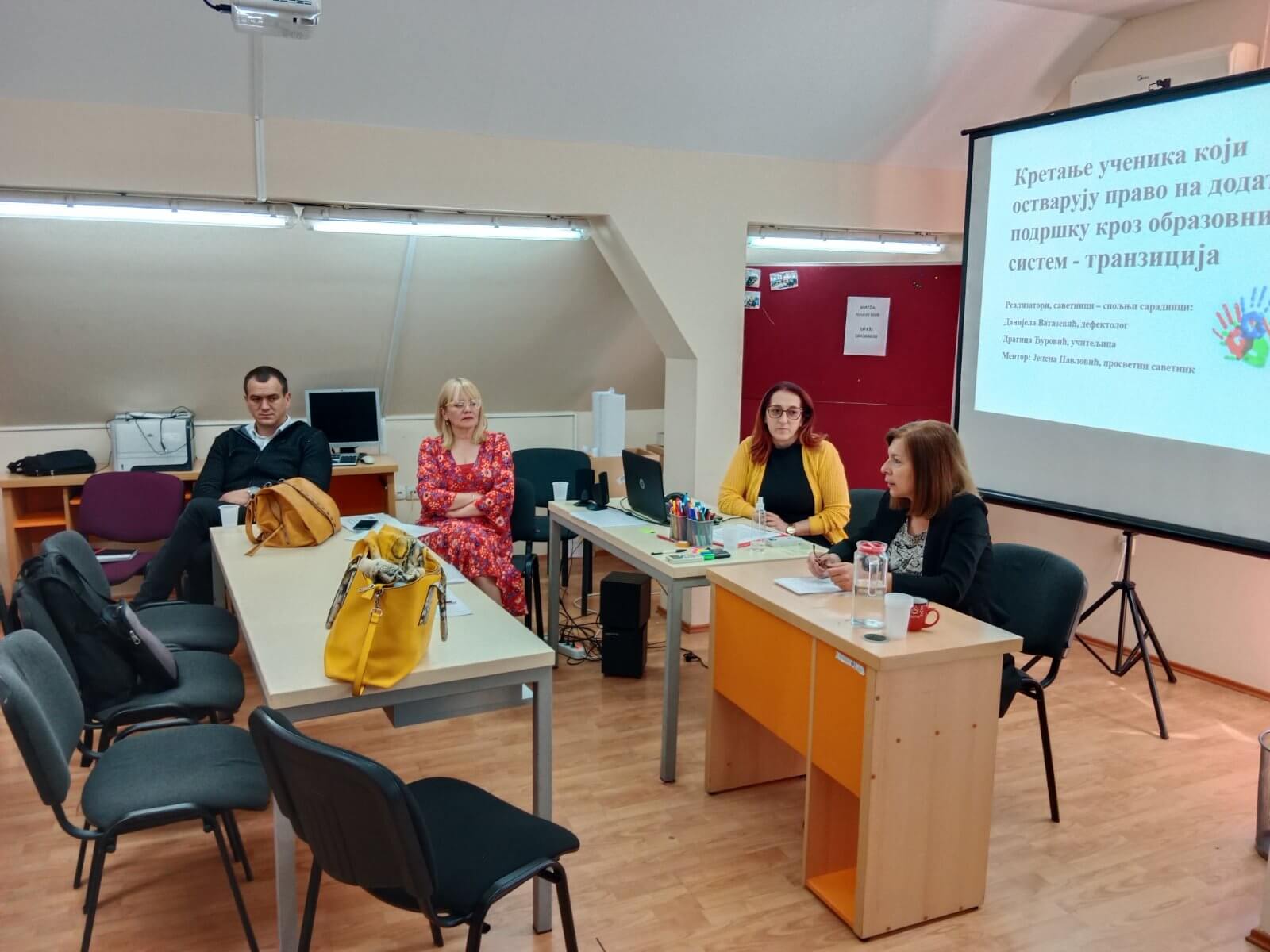 У циљу даљег пружања стручне помоћи у области инклузивног образовања, 11. маја у РЦУ, одржана је радионица: Кретање ученика који остварују право на додатну подршку кроз образовни систем – транзиција.Радионицу су реализовали саветници - спољни сарадници Школске управе Ужице за инклузивно образовање, Данијела Ватазевић и Драгица Ђуровић, у сарадњи са просветним саветником Јеленом Павловић и психологом из ОШ „Живко Љујић“, Богданом Филиповићем.