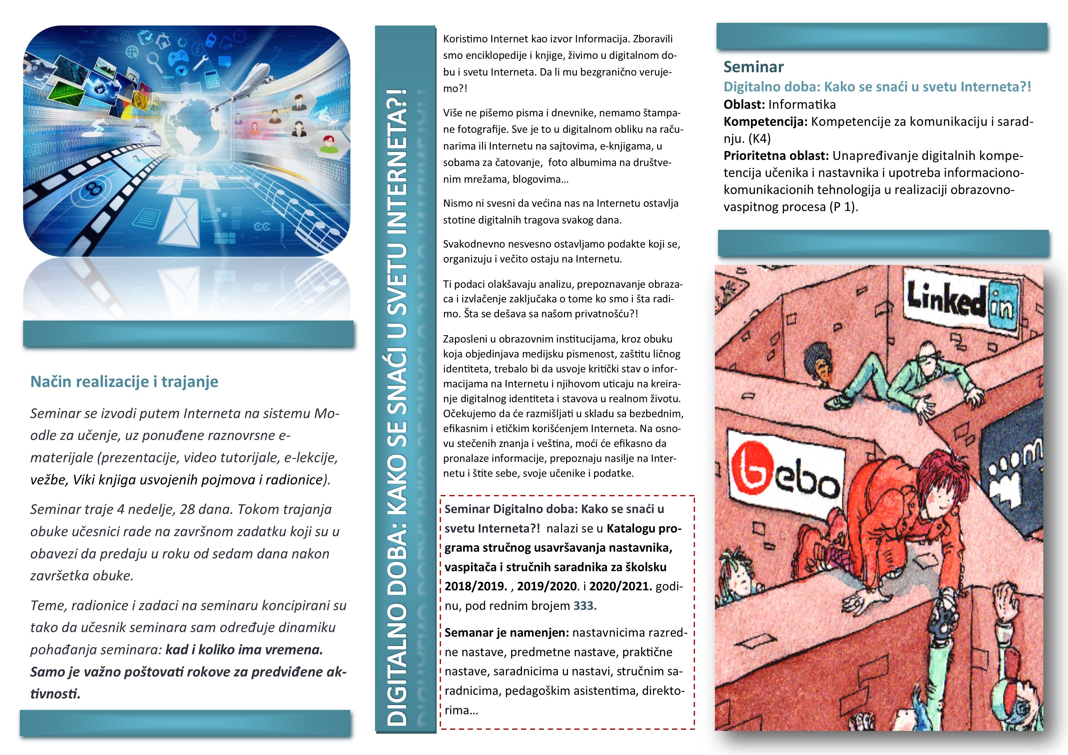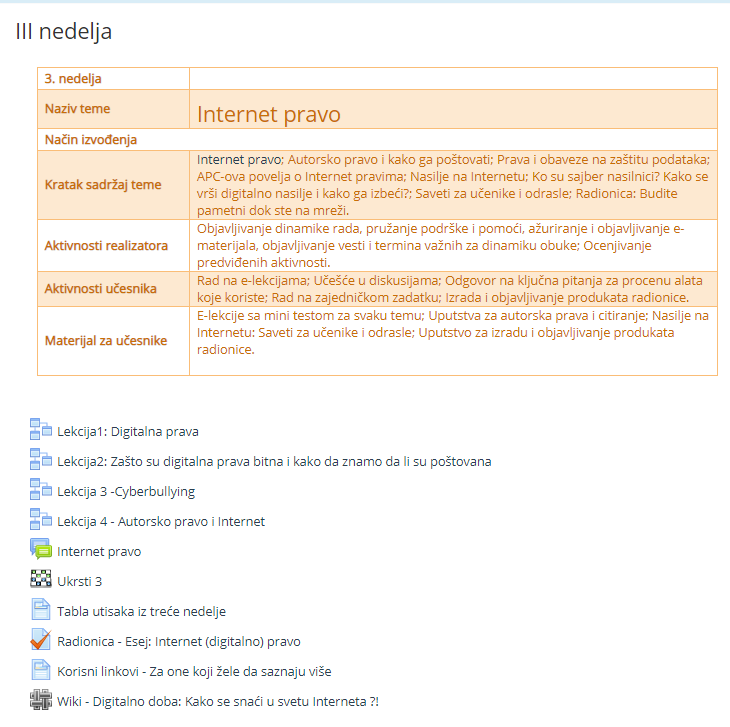 Циљ семинара: јачање структура за разумевање значаја и подстицања критичког мишљења о информацијама са Интернета, кроз унапређење информационе писмености и повећање свести о Интернет праву и значају заштите идентитета, приватности и личности на Интернету.
