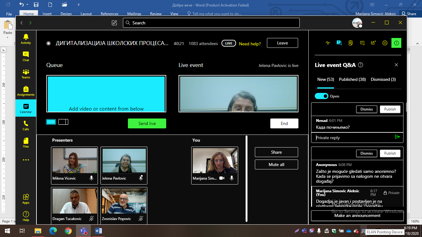 Обуку Дигиталитзација школских процеса и активности су у оквиру система Office 365 реализовали запослени из Техничке школе у Ужицу, који већ седам година користе ову платформу: Драган Туцаковић, Јелена Павловић, Звонислав Поповић, Мирјана Симовић Алексић, Марина Јелисијевић, Татјана Старчевић, Ана Радановић и Бранкица Антонијевић.