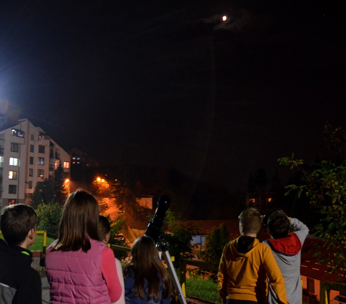 У петак, 19.10. 2018. године у оквиру пројекта „Шта знаш о првом комшији?“, Научног клуба РЦУ, реализoвано је још једно посматрање Месеца телескопом.