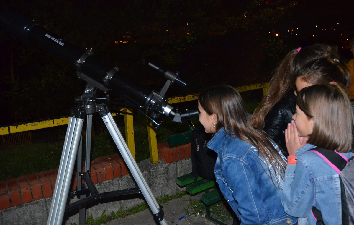 Телескоп је био постављен у дворишту ОШ „Слободан Секулић“ Ужице. Упркос повремено облачном времену Месец је посматрало око 50 ученика.