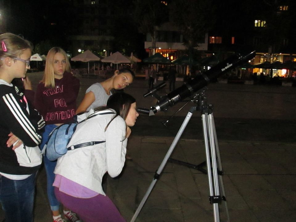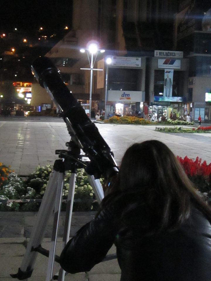 Сарадници Научног клуба РЦУ, наставници физике, Јелена Радовановић и Владан Младеновић, 21. септембра су, након одржане радионице у оквиру пројекта „Шта знаш о првом комшији?“ , посматрали месец телескопом на ужичком тргу са заинтересованим суграђанима.