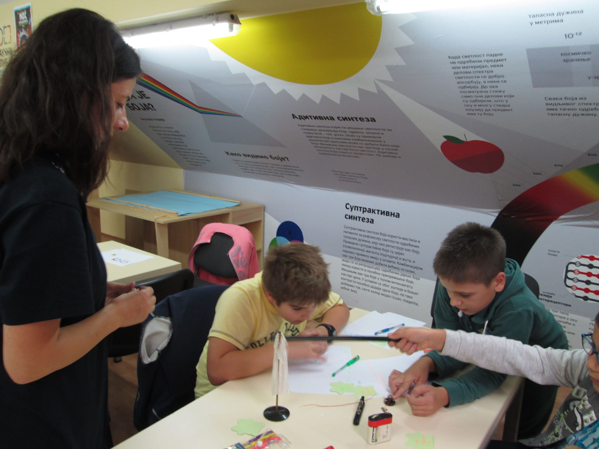 Радионица је намењена ученицима петог и шестог разреда, а радионицу су водили Јелена Радовановић и Владан Младеновић, наставници физике.