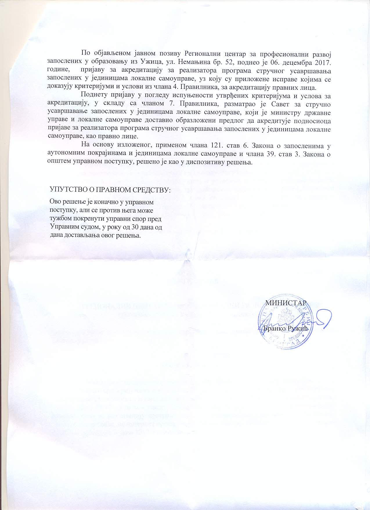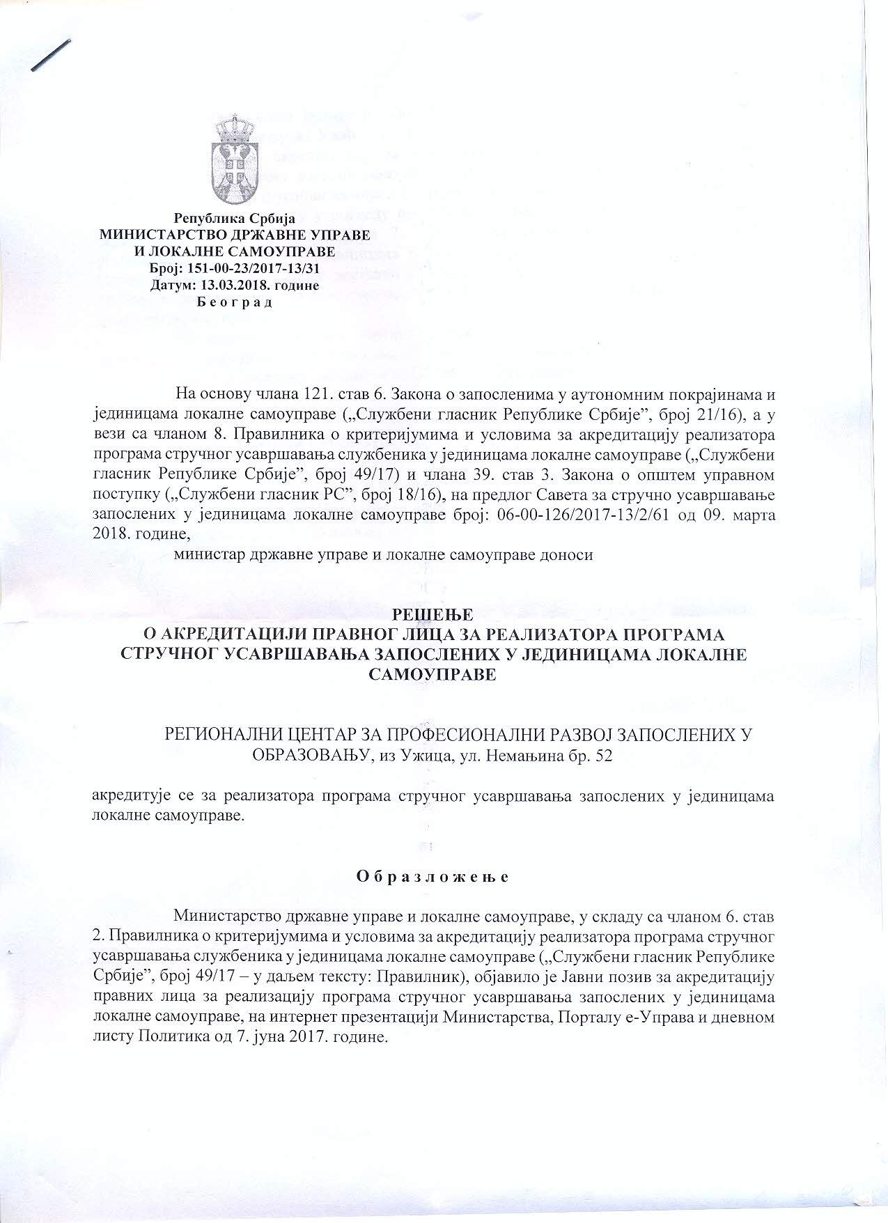 РЦУ званично добио Решење о акредитацији правног лица за реализатора програма стручног усавршавања запослених у јединицама локалне самоуправе