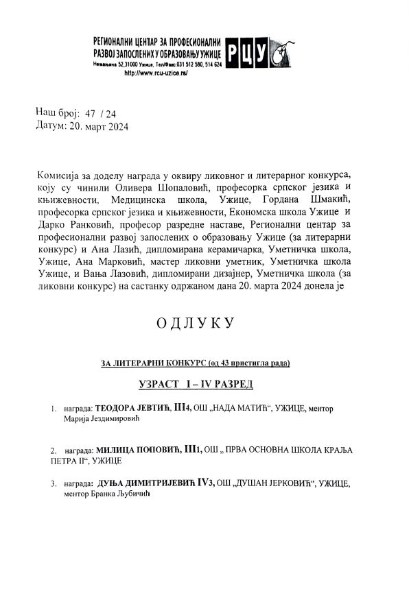 Веб сајт: www.rcu-uzice.rs