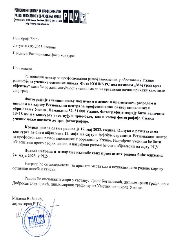 Pегионални центар за професионални развој запослених у образовању Ужице расписује за ученике основних школа Фото конкурс под називом "Мој град кроз објектив"