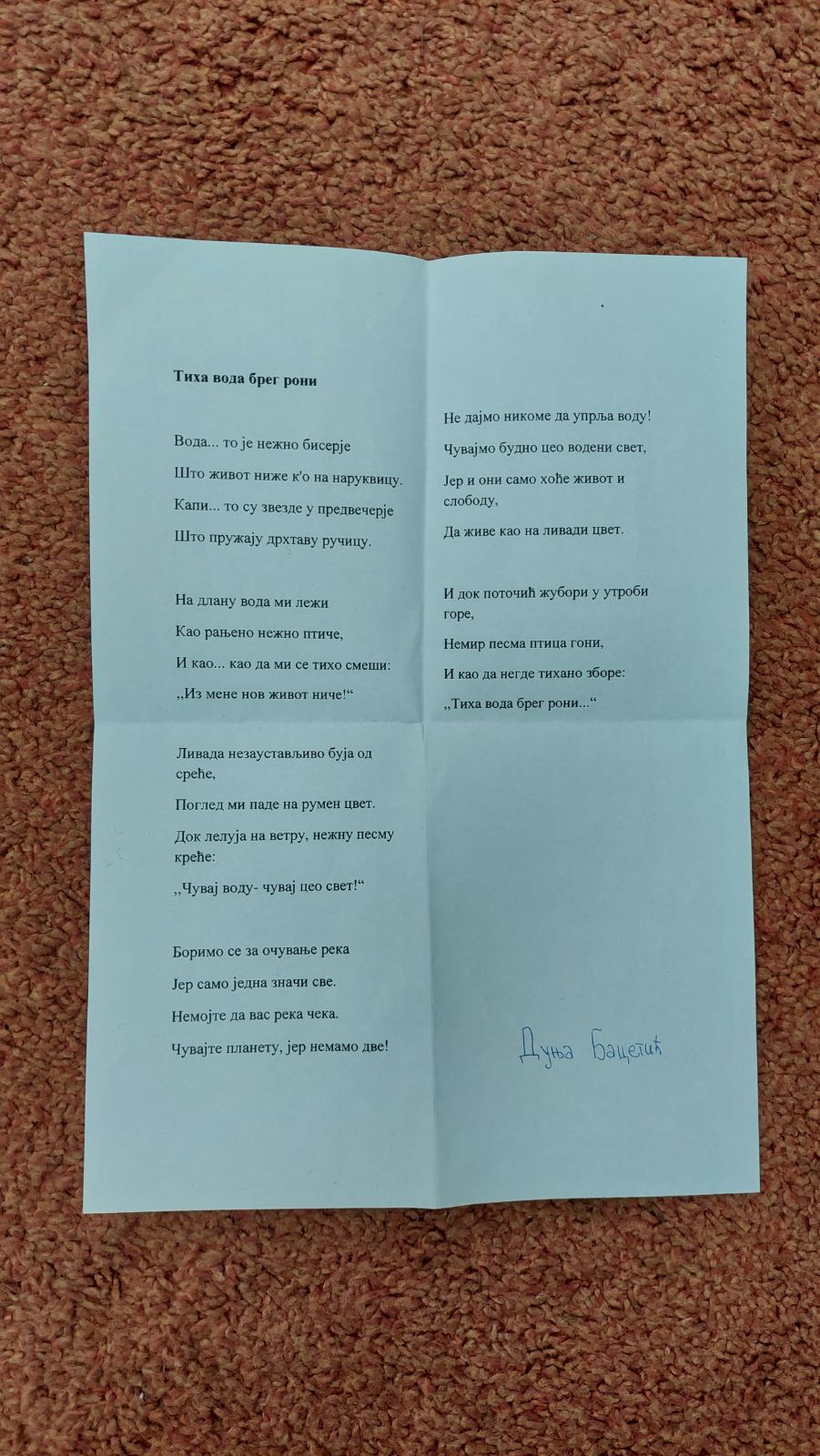 Прва три места у оквиру литерарног конкурса ,,ТИХА ВОДА БРЕГ РОНИ“
