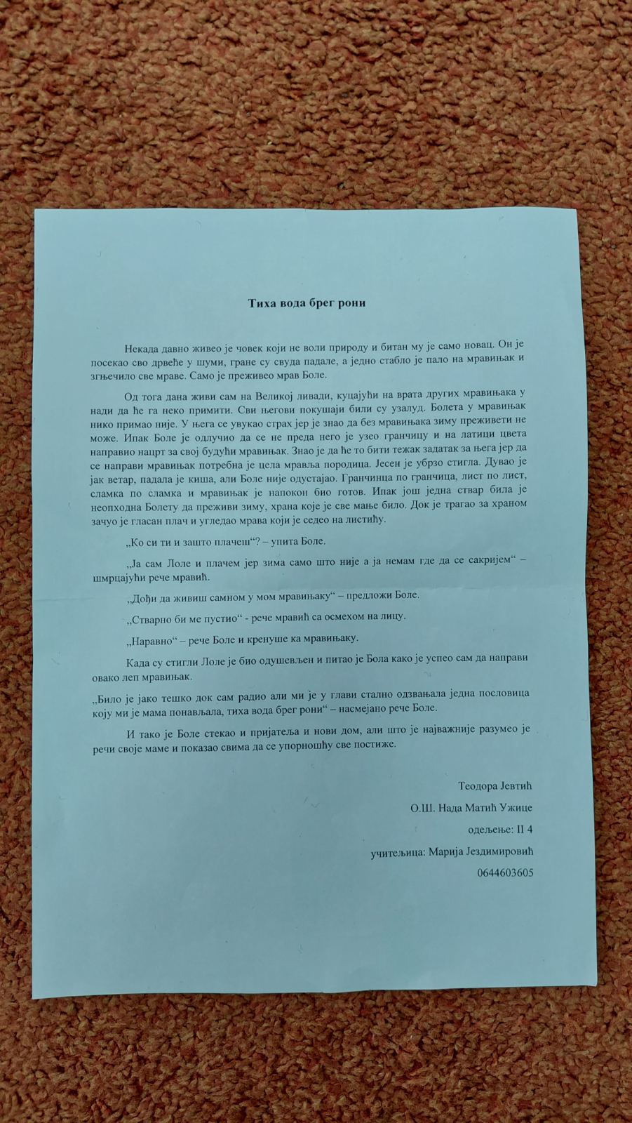 Треће место: ТЕОДОРА ЈЕВТИЋ, II4, ОШ „НАДА МАТИЋ“, УЖИЦЕ, ментор Марија Јездимировић